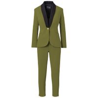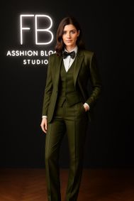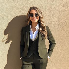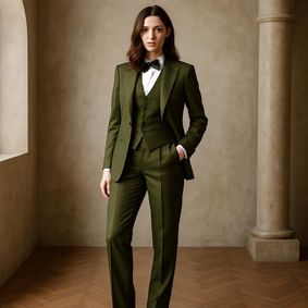 A women's dark green suit pairs well with just about any color. Consider white for a classic look, opt for brown to add sophistication, or choose blush pink for a hint of romance. Mustard yellow adds a trendy pop, while light green offers monochromatic harmony. The specific deep and therefore versatile shade of this green, plus these color selections, allows you to customize your outfit to both your personal style and the occasion, making a dark green suit a wonderful addition to your wardrobe.