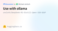 1.5B version (smallest): ollama run deepseek-r1:1.5b 8B version: ollama run deepseek-r1:8b 14B version: ollama run deepseek-r1:14b 32B version: ollama run deepseek-r1:32b 70B version (biggest/smartest): ollama run deepseek-r1:70b