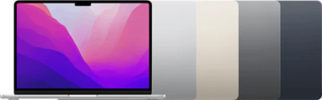 Model: Silver: MW1G3LL/A (English) / MW1G3C/A (French) Starlight: MW1J3LL/A (English) / MW1J3C/A (French) Sky Blue: MC7A4LL/A (English) / MC7A4C/A (French) MW1L3LL/A (English) / MW1L3C/A (French) Features: IPS display with True Tone (2880 × 1864) FaceTime HD camera 10-core CPU 10-core GPU Touch ID fingerprint sensor Processor and Memory: Apple M4 chip 10-core CPU 16 GB RAM Drives: 256 GB SSD No optical drive Graphics and Video: 15.3 in. LED backlit IPS display (2880 × 1864) True Tone technology 10-core GPU Communications: Wi-Fi 6E + Bluetooth 5.3 1080p FaceTime HD camera Ports
