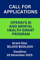 Read more about it at: https://openai.com/index/ai-mental-health-research-grants/ How to apply · Submissions are open today through December 19, 2025, 11:59 PM PST. A panel of internal researchers and experts will review applications on a rolling basis and notify selected proposals on or before ...