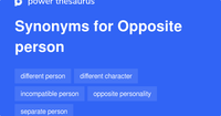 Antonyms for person include nonhuman, beast, creature, abstract, inanimate, animal, plant, non-anthropoid, lower animal and wild thing. Find more opposite words at wordhippo.com!