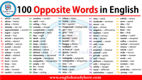 100 Opposite Words | Antonyms In English | Common ...