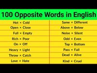 In this lesson, we’ve grouped 100 opposite words into 10 categories, with 10 word pairs in each category. This makes it easier to learn and remember antonyms in English based on their context.