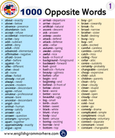 1000 Opposite Words List - English Grammar Here