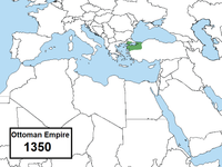 Growth and decline of Ottoman Empire for 1350, 1450, 1550, 1650, 1750, 1850, 1908, 1914, 1923 Turkey