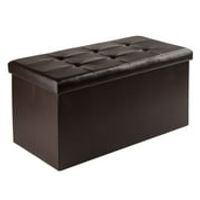 SortWise30 Inches Folding Storage Ottoman Bench, Faux Leather Storage Chest, Coffee Table Foot Rest Stool Seat, Black