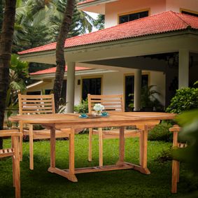 Shop Teak Wood Patio Dining Tables (Round, Oval and Rectangular) by Chic Teak Canada: Extension Table, Folding Table, Oval, Rectangular, Round, Serving Table, Square