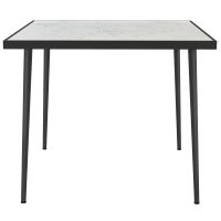 Highlights90 x 90cm square size: This outdoor dining table is designed to accommodate four people, creating a space for communal dining.Tempered glass tabletop with a marble effect: The durable top provides a secure surface for dining in your garden.Steel frame: Coated with powder for added durability, ensuring the table is robust and stable.Adjustable feet: Ensures the table remains steady and well-balanced on outdoor surfaces.Dimensions: Measuring 74H x 90L x 90Wcm, with a maximum load capacity of 50kg. Assembly is required. Features:90cm x 90cm tabletop designed for four individualsMarble e