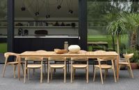 Weather-resistant teak is paired with sturdy stainless steel for an outdoor dining table design that is both functional and timeless. Place poolside for the perfect patio BBQ set-up paired with matching solid teak wood chairs for your own backyard oasis. ... Modern, yet timeless, this sturdy and durable design offers proportions ideal for a small patio or city deck space.