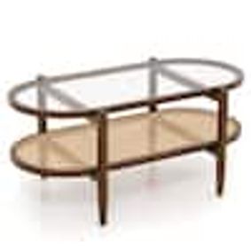 【Ample Storage with Dual Layers】 The 2-tier design combines a sleek glass surface with a woven rattan shelf, offering practical storage and display options. Store books, baskets, or essentials on the lower shelf while keeping the top free for décor, candles, or coffee mugs. 【Rustic Farmhouse & Boho Charm】 With its natural rattan-style shelf, oval shape, and clean metal lines, this farmhouse coffee table blends rustic warmth with bohemian elegance.