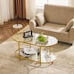 Amazon.com: Saint Mossi Oval Glass Coffee Table for Living Room, Mid Century Center Table, Clear Glass & White MDF Bottom Shelf with Rounded Corners, L41xW21xH17, Gold Table Legs : Home & Kitchen