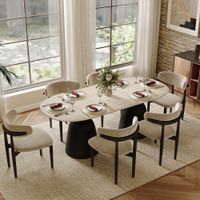 Discover the Mid-Century Modern Oval Dining Table for 6 at POVISON store which can fit for most home styles. Free shipping on each order. The mid-century modern oval dining table is absolutely stunning! The matte yellow travertine sintered stone is top-notch quality, and the black double pedestal base adds such a modern touch. Logistics were efficient, and installation was a breeze. 79" Mid-Century Modern Oval Dining Table for 6, Matte Yellow Travertine Sintered Stone Dining Table, Black Double Pedestal Table Base