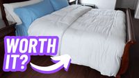 We have a King bed and I’ve bought probably a dozen supposedly “King” size or even California King comforters and they’re all too small. I want one that reaches the floor on the sides so my husband and I don’t keep playing tug of war with it. It’s affecting our marriage! Price is no object. What store or online site has comforters, quilts, or duvets that are big enough for what I need?
