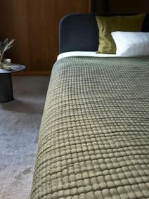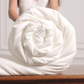 I have a giant king pure linen duvet cover that I place a silk stuffed comforter in. It's like covering up with butterfly wings of warmth. In summer we put a thin cotton quilt in the duvet cover. Hangs to the bottom of the highest mattress. More on reddit.com