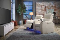 Palliser Audio Home Theater Seat Series 41422: Audio is a modern home theatre collection that delivers all the bells, whistles and comfort you want, in a small scale ideal for smaller rooms. Wallhugger technology allows you to recline fully without a second thought - even inches from the wall. This collection ensures you won't have to compromise on comfort when it comes to an exceptional entertainment experience.