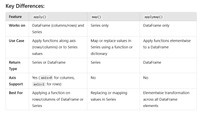 - Run any user-defined function on a DataFrame or Series