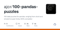 GitHub - ajcr/100-pandas-puzzles: 100 data puzzles for pandas, ranging from short and simple to super tricky (60% complete)