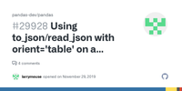 Using to_json/read_json with orient='table' on a DataFrame with a single level MultiIndex does not work · Issue #29928 · pandas-dev/pandas