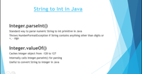 Use parseInt(String) to convert a string to a int primitive, or use valueOf(String) to convert a string to an Integer object.