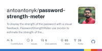 GitHub - antoantonyk/password-strength-meter: To display the strength of the password with a visual feedback. PasswordStrengthMeter use zxcvbn to estimate the strength of the password and also provide a visual feedback with suggestions and warning messages.