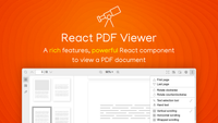 React PDF is a feature-rich React PDF viewer component. Powered by PDF.js, it offers seamless integration with PDF documents. With customizable toolbars, search, and smooth navigation, it’s designed to deliver a professional PDF viewing experience.