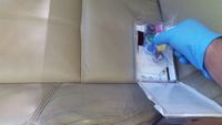 Demonstrating leather repair fix on a 1991 Corvette leather seat with a hole in it.I used the PERMATEX VINYL and LEATHER REPAIR KIT. Patching and leather dy...