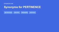 Find all the synonyms and alternative words for PERTINENCE at Synonyms.com, the largest free online thesaurus, antonyms, definitions and translations resource on the web.