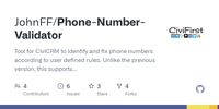 GitHub - JohnFF/Phone-Number-Validator: Tool for CiviCRM to identify and fix phone numbers according to user defined rules. Unlike the previous version, this supports phone numbers from many countries.