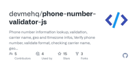 GitHub - devmehq/phone-number-validator-js: Phone number information lookup, validation, carrier name, geo and timezone infos, Verify phone number, validate format, checking carrier name, geo and timezone infos. · GitHub