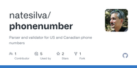 GitHub - natesilva/phonenumber: Parser and validator for US and Canadian phone numbers