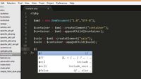 The Document Object Model (DOM) approach (which is a W3C standard and should be familiar if you've used it in other environments such as a Web Browser or Java, etc). Allows you to create documents as follows