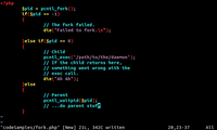 The other problem is somewhat buggy signals. In my experience, signal handlers are not always entered correctly with PHP, especially when the signal is queued instead of merged. That may not be an issue for you, i.e. if you just need to handle SIGINT/SIGUSR1/SIGUSR2/SIGHUP.