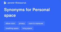 Synonyms for personal space include boundaries, comfort zone, personal boundaries, proximity, vicinity, presence, immediacy, privacy, solitude and seclusion. Find more similar words at wordhippo.com!