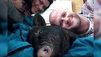 Louie Pampered Pig Shares Bed With Owners - YouTube