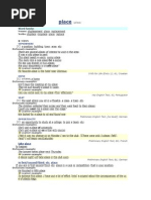 Noun · place (SOMEWHERE) take place · in place · out of place · all over the place · in place of sth · place (HOME) place (OPPORTUNITY) in first/second/third, etc place · Verb · place · place sth in/on, etc · can't place sb · place an advertisement/bet/order, etc ·