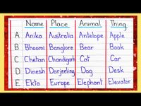 Name Place Animal Thing A to Z || Name Place Animal Thing ...
