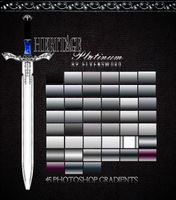 March 2, 2008 - Greys this time.. 45 grey based gradients with companions. First one, transparent. 35., especially for swords. ES Platinum.grd and preview in zip. Free use for personal, business works. There're some rules about redistributing, on my journal first page. Please respect them.