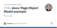 March 31, 2020 - microsoft / playwright Public · Notifications · You must be signed in to change notification settings · Fork 5.5k · Star 86.7k · New issueCopy link · New issueCopy link · Closed · Closed · Page Object Model [Question]#1604 · Copy link · tomern · opened · on Mar 31, 2020 ·