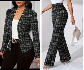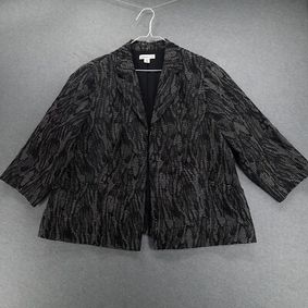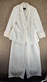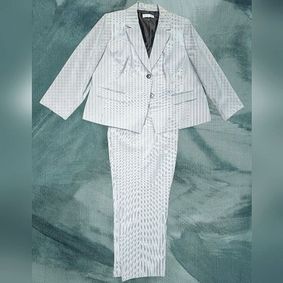 I have a couple of suits, one black and one black and white houndstooth blazer with black pants. I’d like to get one more suit that isn’t black, maybe royal blue? I’m very self conscious of my apron belly, so I only wear flat-front pants, and the blazer needs to be about hip length, so I can wear it with an untucked top. I’ve been to a lot of conferences where I’ve seen women wearing suits with wide leg pants and sneakers which would be great for me given that I don’t wear heels. The thing is, i really struggle to find suits that don’t look like they are about 20 years out of style, navy or black. Any suggestions on stores where I can find bold color, professional style suits in 16 to 18w?