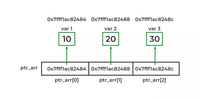 As you can see the both values are equal to the size of an integer array of 10 elements. So the pointers point to arrays.
