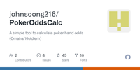 More on reddit.comI wrote up a guide for poker odds incl. calculator & cheat sheet