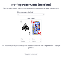 The most advanced Poker Odds Calculator on the web. Know your probability of having a winning hand against one or many opponents in Texas Hold'em.