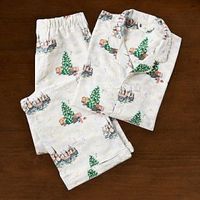 One Pajama Set by Pottery Barn Teen in the Harry Potter Hogwarts ChristmasCollection. Inspired by the Wizarding World™, this pajama set transports you to the magic of Hogwarts. Pajama top has buttons for closure, bottoms have elastic waistband.