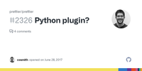 Check out prettier/prettier-python — @azz added a plugin API to the Prettier core, and @patrick91 is working on the printer in prettier/prettier-python. ... Please open a new issue and fill out the template instead of commenting. label ... Sign up for free to subscribe to this conversation on GitHub.