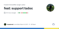 hosseinmd / prettier-plugin-jsdoc Public · Notifications · You must be signed in to change notification settings · Fork 32 · Star 266 · RunDevelopment started this conversation in Ideas · TSDoc and TypeScript support #68 · RunDevelopment · Feb 10, 2021 ·