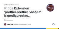 Extension 'prettier.prettier-vscode' is configured as formatter but not available. Select a different default formatter to continue.