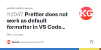 Prettier does not work as default formatter in VS Code 1.57.1 on Windows.