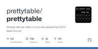 >>> from prettytable import PrettyTable