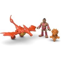 Kids can protect the tribe from imminent attack when they use this Fisher-Price Imaginext Pterodactyl. This accessory is ready to guard the good guys from harm. When the Bone tribe attacks, just push the button on the creature's back to flap his wings and intimidate the enemy. The Pterodactyl toy lets kids get a birds-eye view of the action as he swoops in to save his friends. Kids' imaginations can soar high as they create exciting prehistoric adventures for this flying dinosaur. The package includes a Pterodactyl and a warrior with armor and a weapon. Young ones will have plenty of fun with