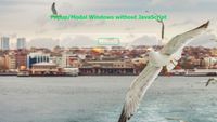 <h1>Popup/Modal Windows without JavaScript</h1> <div id="wrapper"> <p><a class="button" href="#popup1">Click Me</a></p> <p><a class="button" href="#popup2">Click Me Too</a></p> </div> <div id="popup1" class="overlay"> <div class="popup"> <h2>Info box</h2> <a class="close" href="#">&times;</a> <div class="content"> <p>This is done totally without JavaScript. Just HTML and CSS.</p> </div> </div> </div> <div id="popup2" class="overlay light"> <a class="cancel" href="#"></a> <div class="popup"> <h2>What the what?</h2> <div class="content"> <p>Click outside the popup to close.</p> </div> </div> </div>